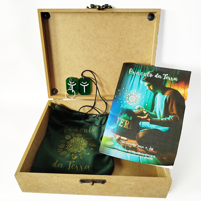 Composto por um belíssimo conjunto de 27 peças, o Oráculo da Terra vem acompanhado de um lindo saco personalizado que comportam as 27 peças, uma caixa de madeira artesanal com proteção e trava e um manual completo com explicações detalhadas. Estudar e utilizar este oráculo é uma jornada de autodescoberta, cura interior e fortalecimento da conexão com a natureza.